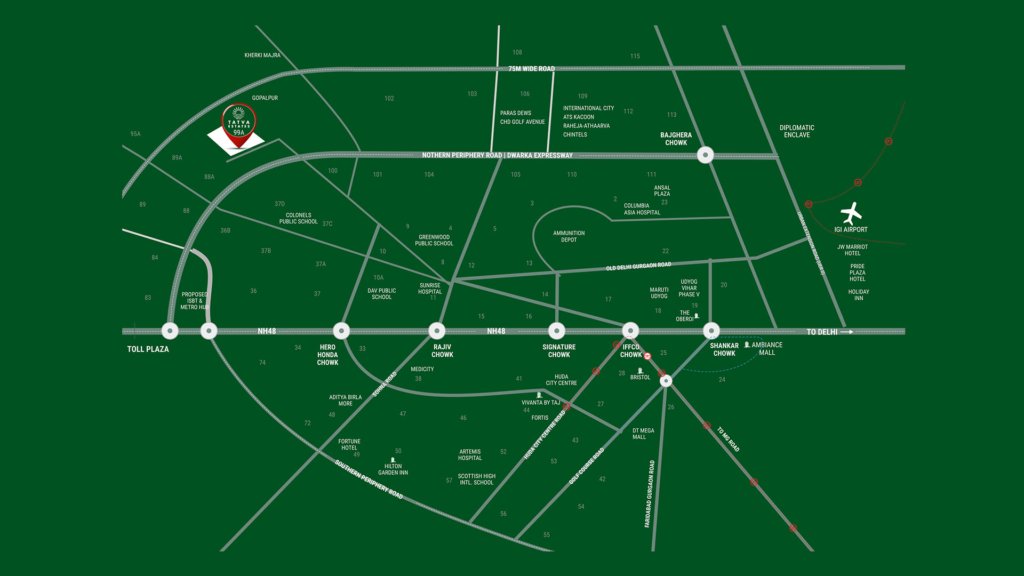Adani Tatva Estates Sector 99A, Gurgaon is strategically located near Dwarka Expressway, ensuring seamless connectivity to Delhi, IGI Airport, major business hubs, and upcoming infrastructure developments.